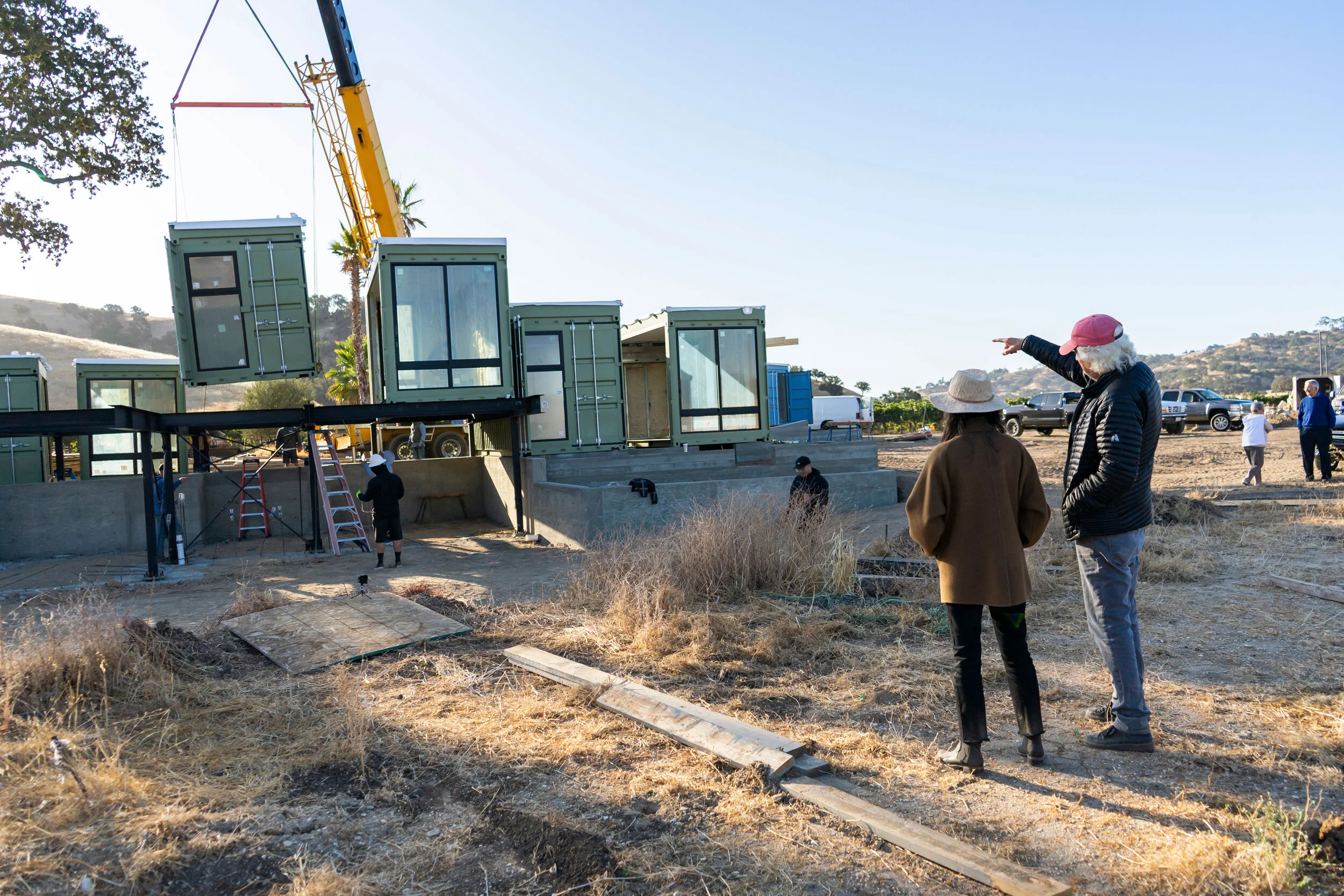 “The luxury bed-and-breakfast showcases 8 units and a reception area set in the middle of 145 acres of vibrant grapevines and rolling hills. Each BnB features recycled and locally-sourced sustainable materials and finishes and is perched above-covered parking and the surrounding vineyards. Ecotech Design developed the master plan and unit design primarily based on the use of recycled shipping containers set in clusters around an existing 60-foot live oak tree and in collaboration with the fabricator, Crate Modular, and the winery co-owners, Steve Cass and Ted Plemons. The design integrates twenty factory-built, steel shipping containers with conventional construction and local building materials.”